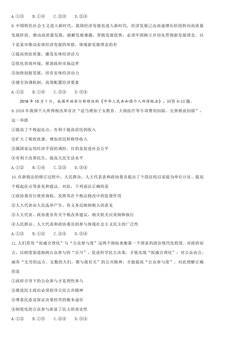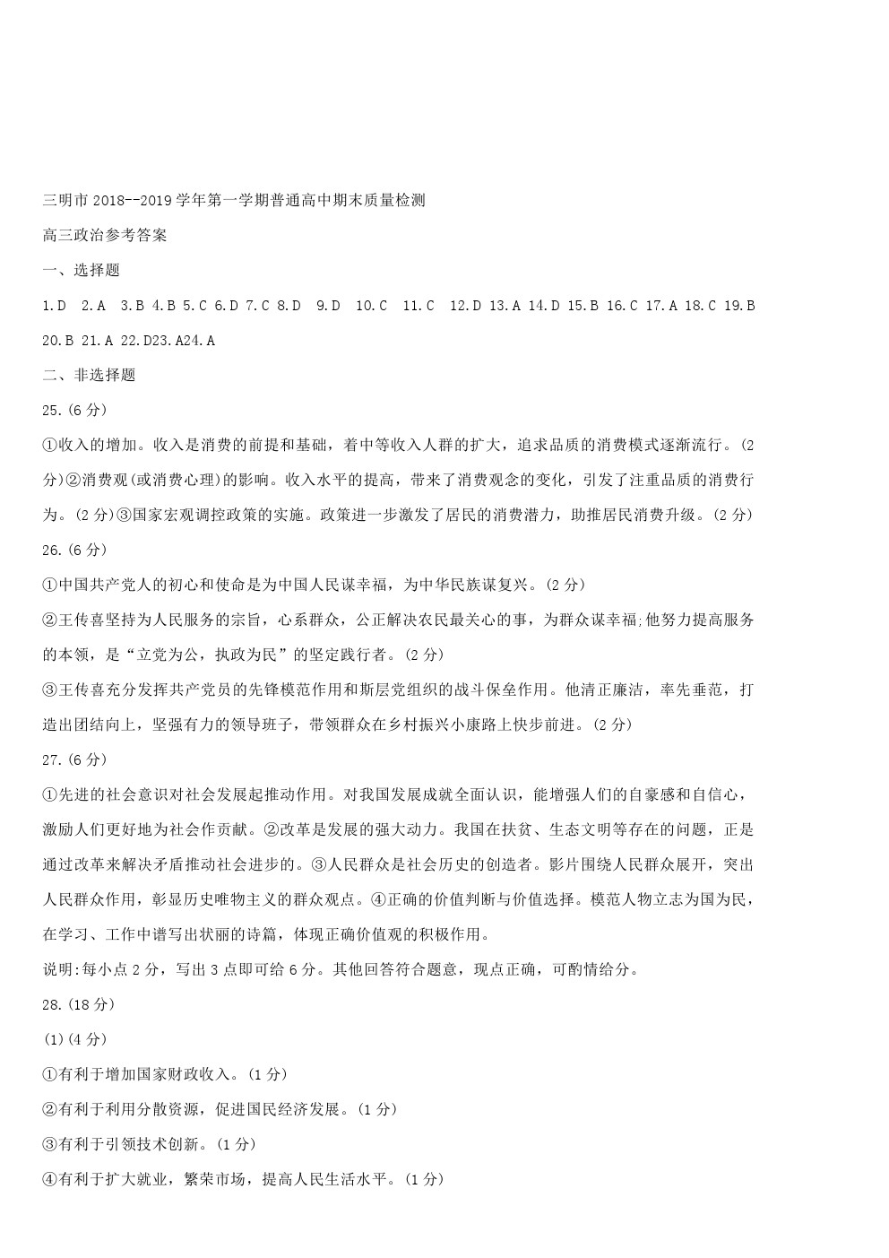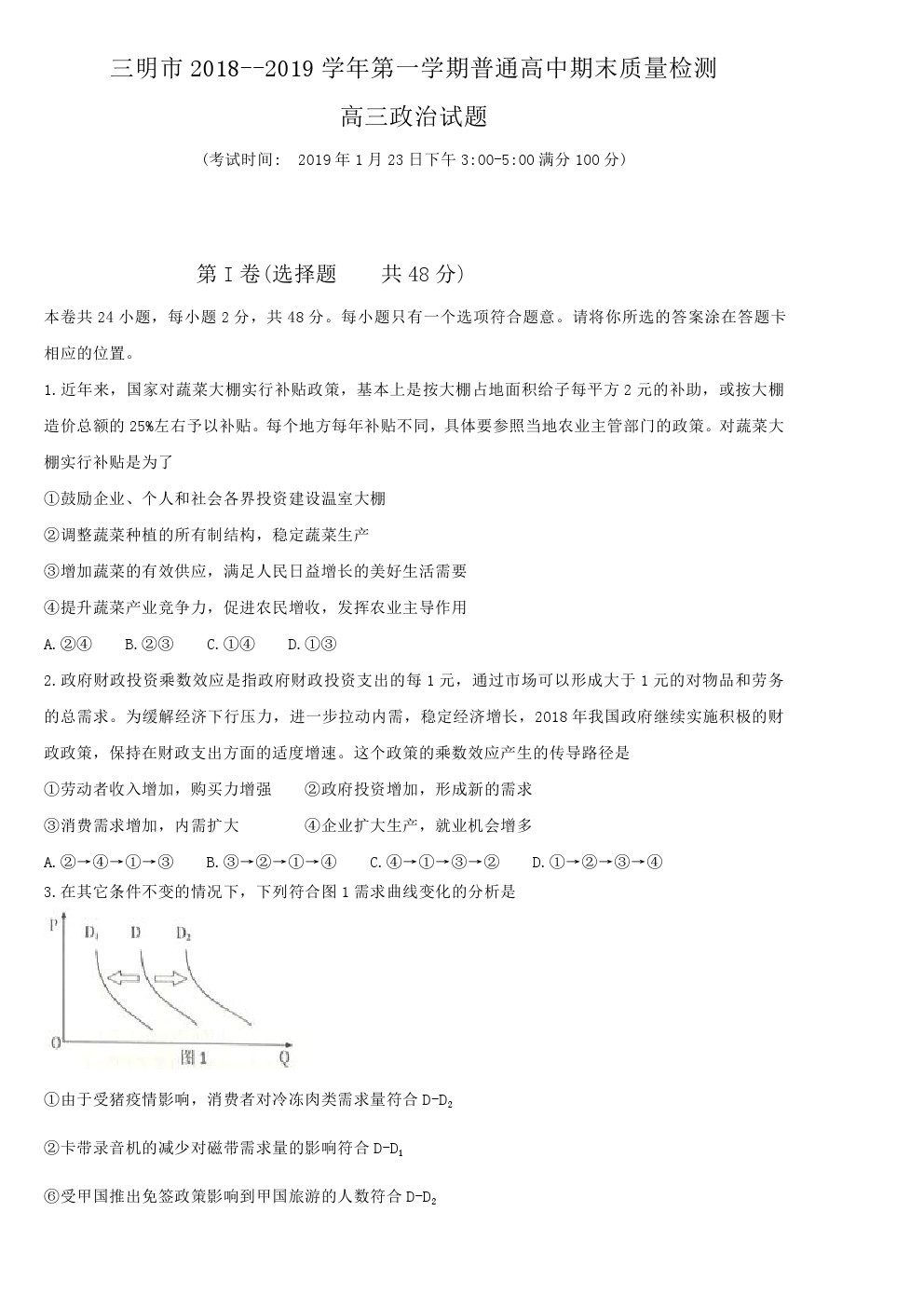 【摘要】福建省三明市2019屆高三年上學期期末質量檢測政治試題及答案,更多高考信息可關注閩州教育高考資訊專欄。