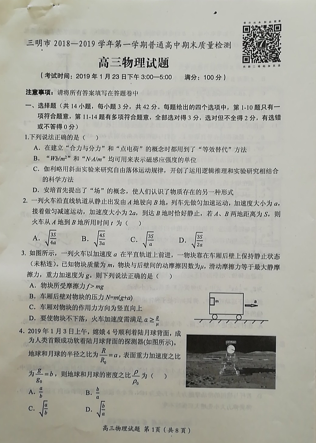 【摘要】福建省三明市2019屆高三上學(xué)期期末質(zhì)量檢測英語試題及答案!如需了解更多高考信息可關(guān)注閩州高考資訊專欄。