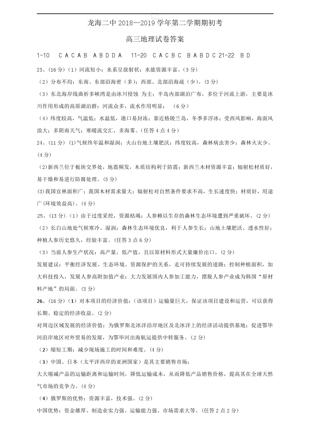 【摘要】福建省龍海市第二中學(xué)2019屆高三下學(xué)期期初考試地理試題及答案!更多高考信息可關(guān)注閩州教育高考資訊專欄。