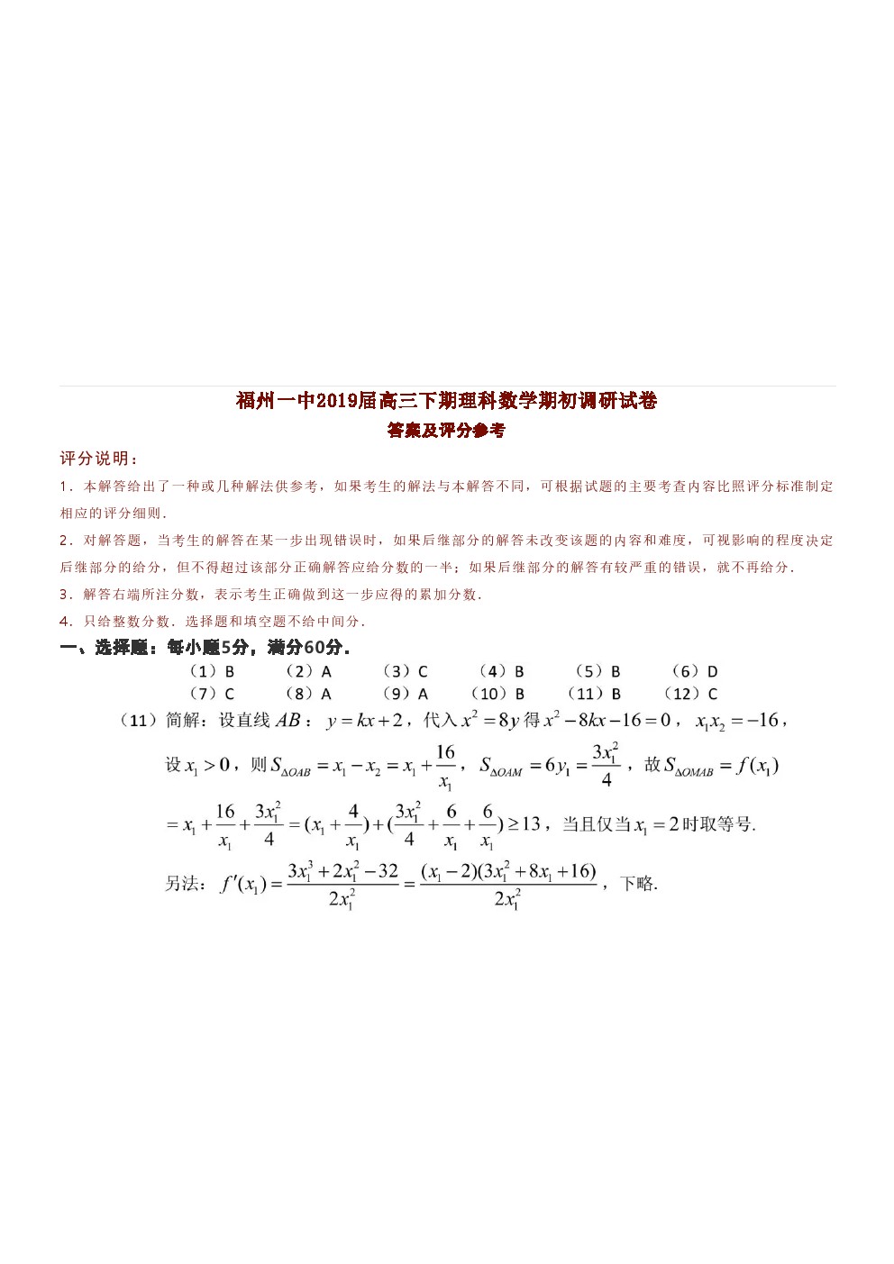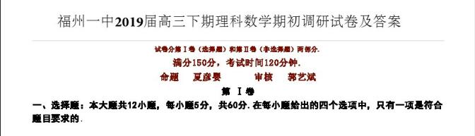 【摘要】福建省福州第一中學(xué)2019屆高三下期(2019年2月)理科數(shù)學(xué)期初調(diào)研試題,考生們可以針對(duì)題目來(lái)更好的復(fù)習(xí)哦,更多高考信息可關(guān)注閩州教育高考資訊專欄。