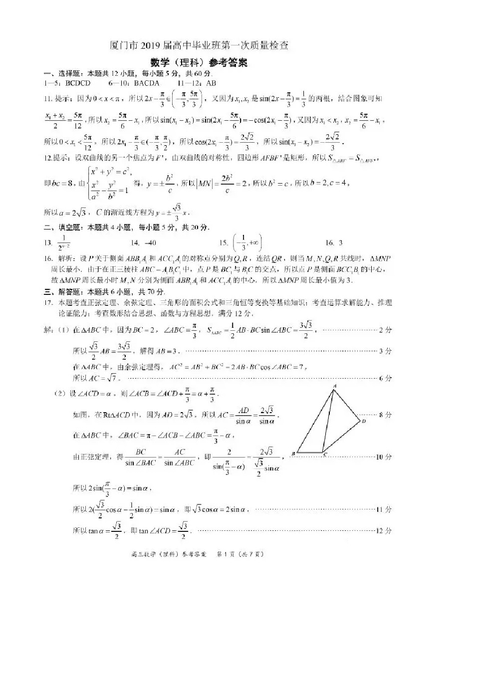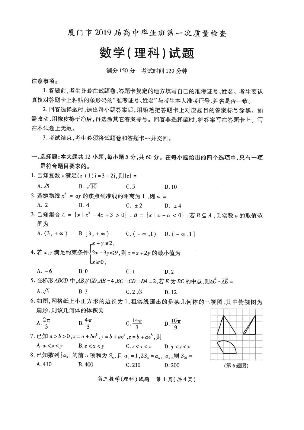 【摘要】福建省廈門市2019屆高三年級第一次質(zhì)量檢測數(shù)學(xué)(理)試題及答案,更多高考信息可關(guān)注閩州教育高考資訊專欄。