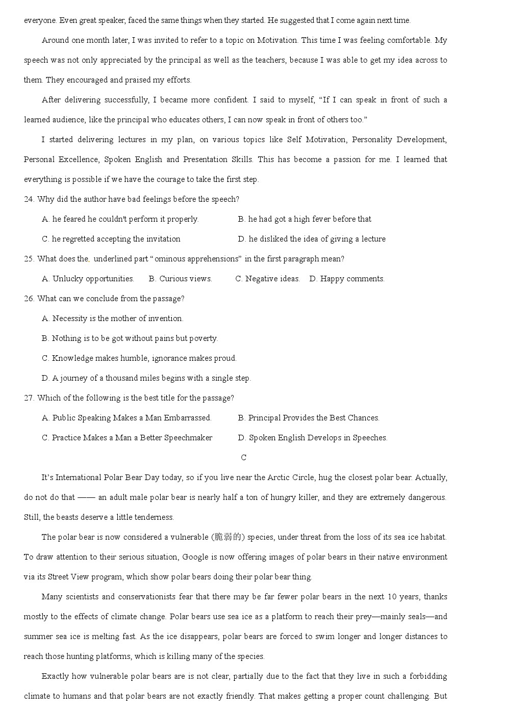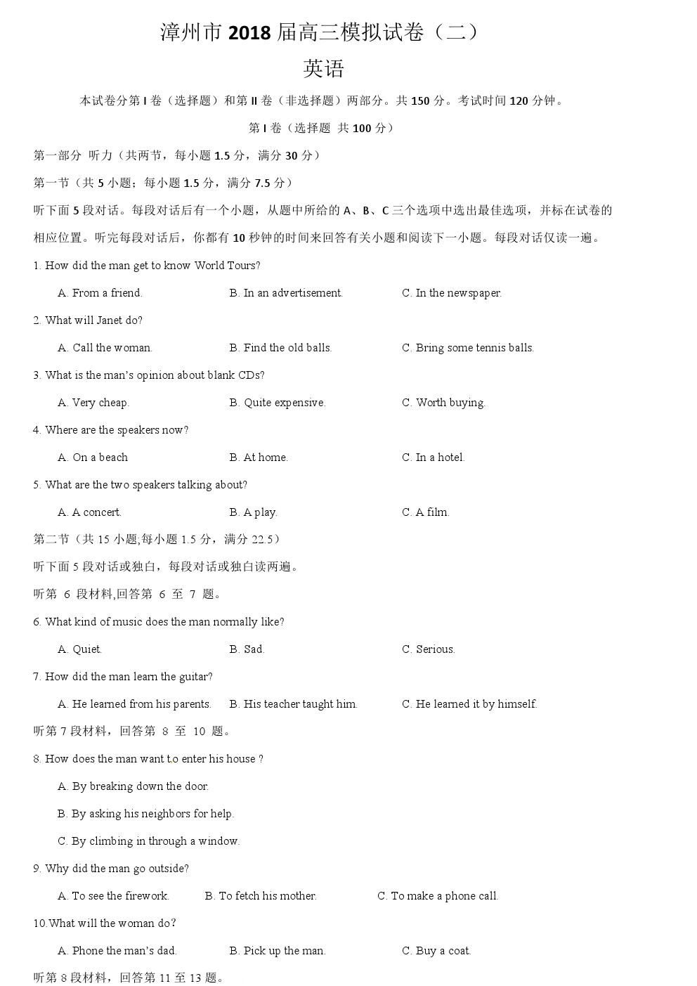 【摘要】福建省漳州2018屆高三考前模擬考試(二)英語試題試題及答案,更多高考信息可關(guān)注閩州教育高考資訊專欄。