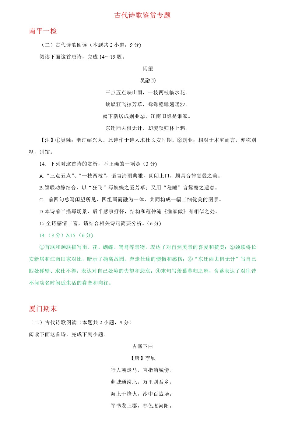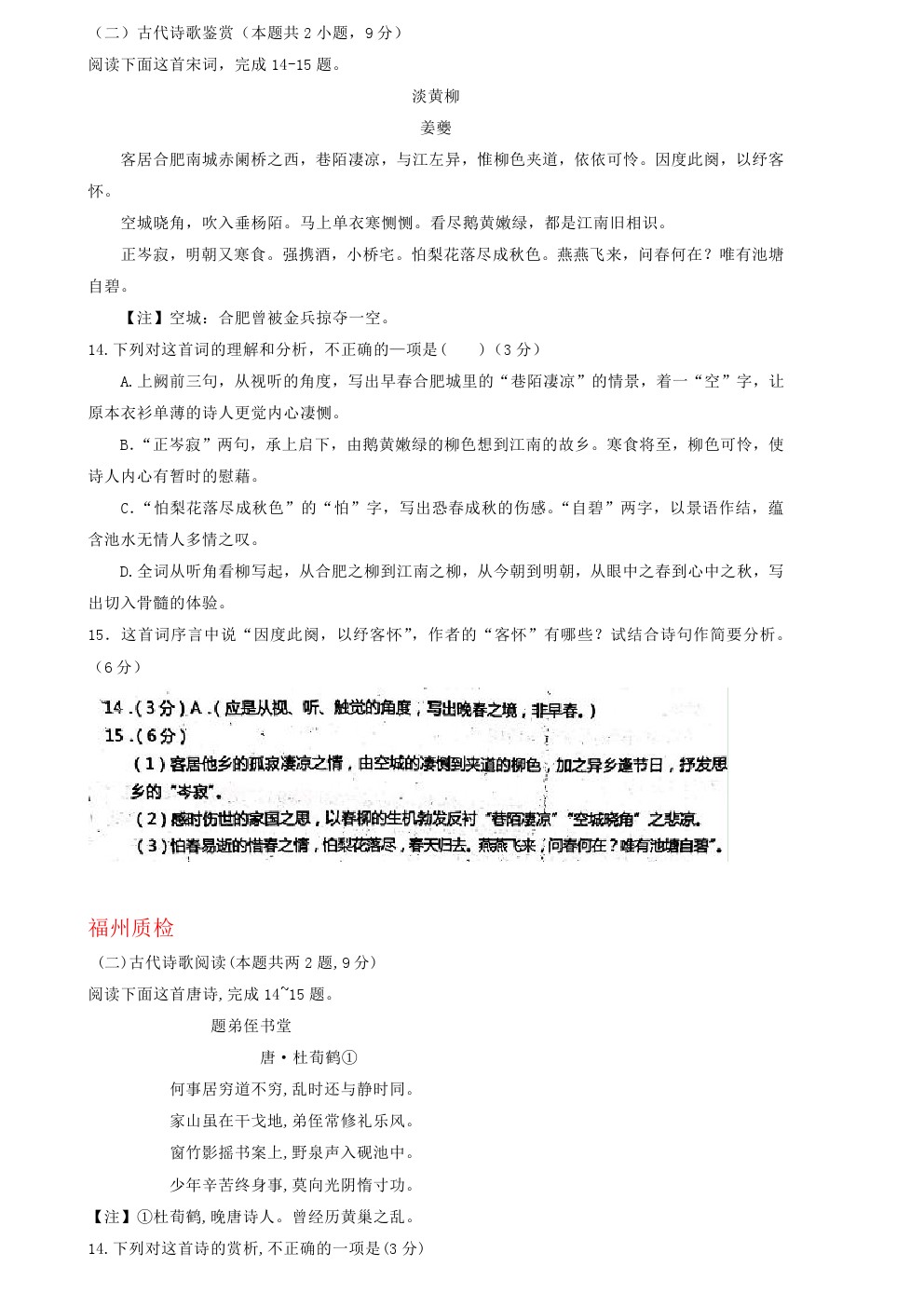 【摘要】福建省各地2019屆高三最新語文試卷精選匯編:古代詩歌鑒賞專題!如需了解更多高考信息可關注閩州高考資訊專欄。