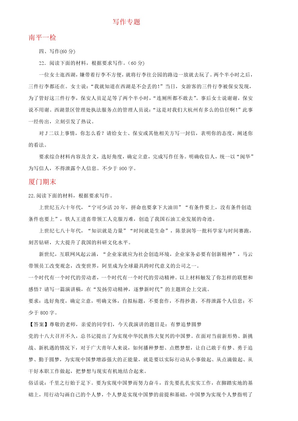 【摘要】福建省各地2019屆高三最新語文試卷精選匯編:寫作專題。更多高考信息可關(guān)注閩州教育高考資訊專欄。