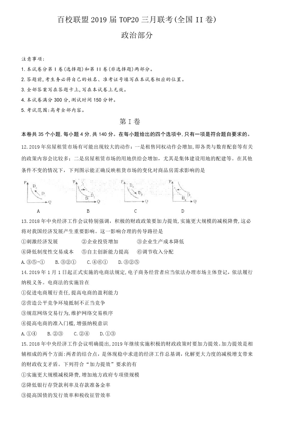 【摘要】百校聯(lián)盟2019屆高三TOP20三月聯(lián)考(全國II卷)政治試題,供大家參考。更多高考信息可關(guān)注閩州教育高考資訊專欄。
