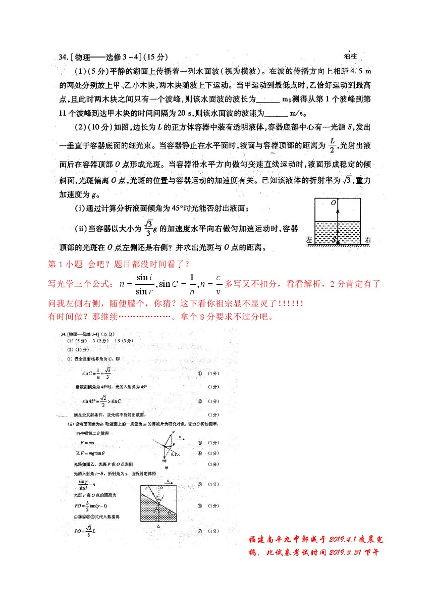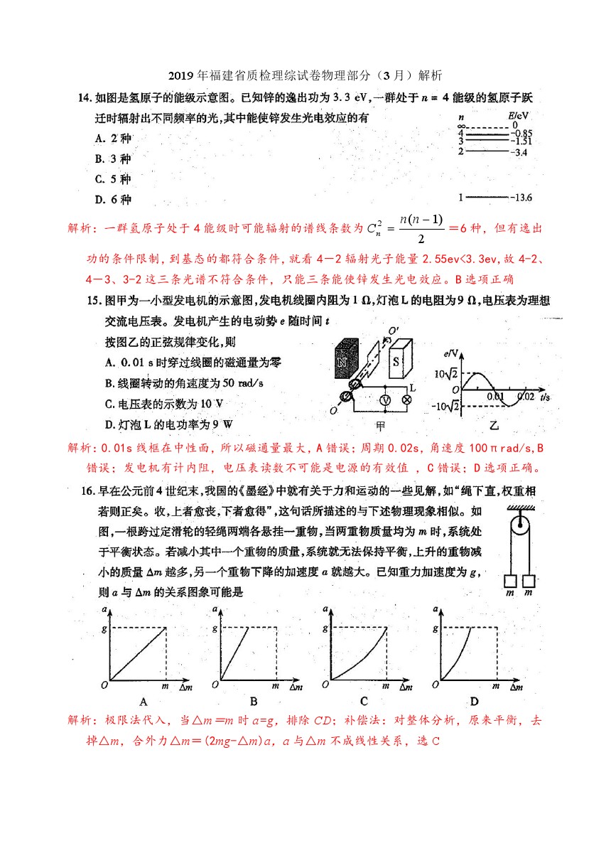 【摘要】福建省2019年高中畢業(yè)班3月質(zhì)量檢測理綜物理試題及答案分析!更多高考信息可關(guān)注閩州教育高考資訊專欄。
