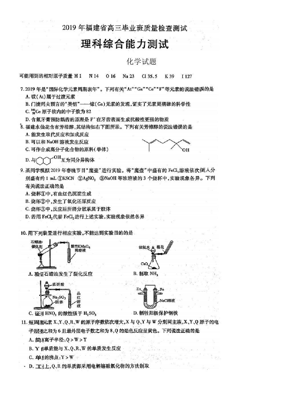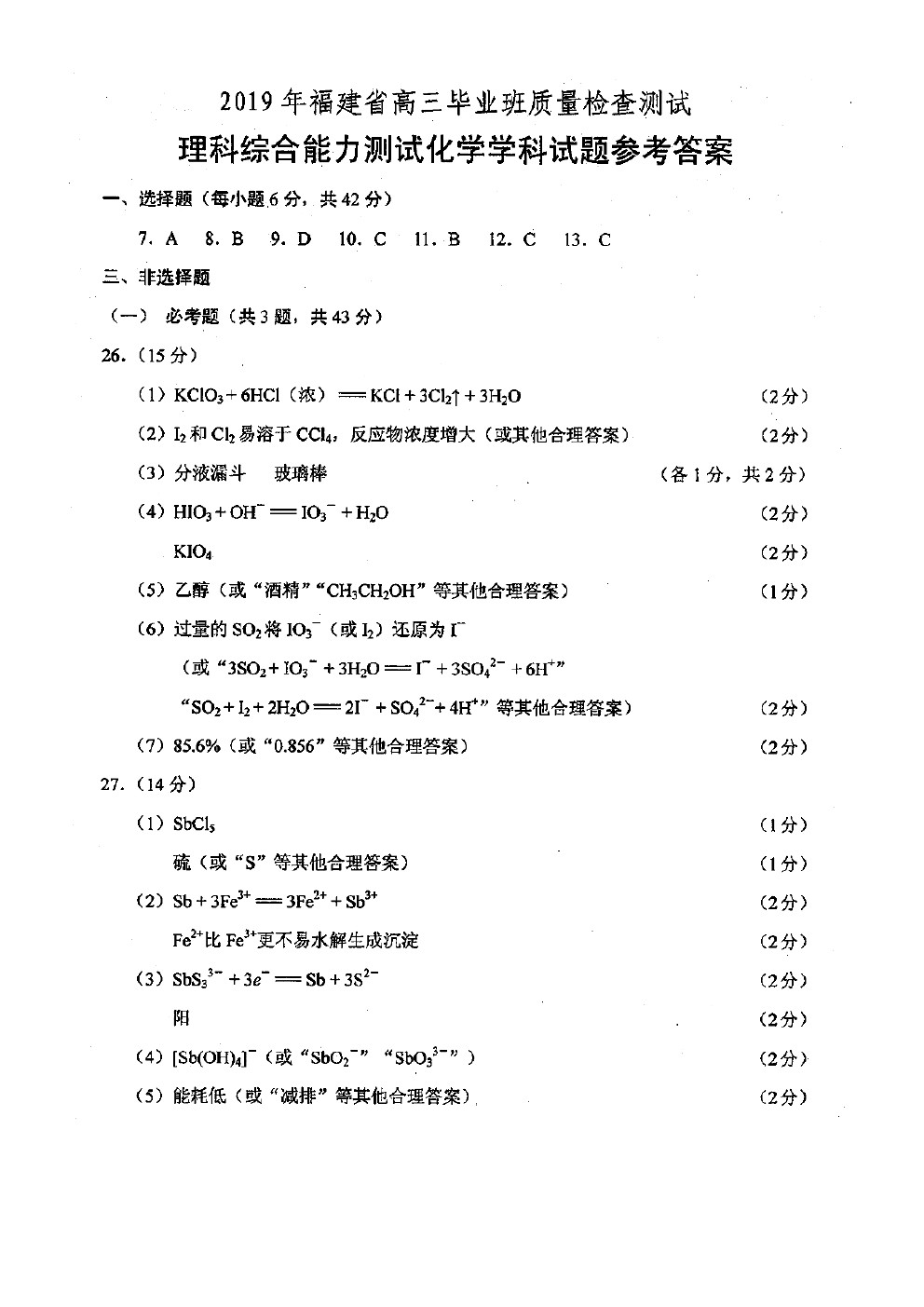 【摘要】福建省2019年高中畢業(yè)班3月質(zhì)量檢測(cè)理綜化學(xué)試題及答案!更多高考信息可關(guān)注閩州教育高考資訊專欄。