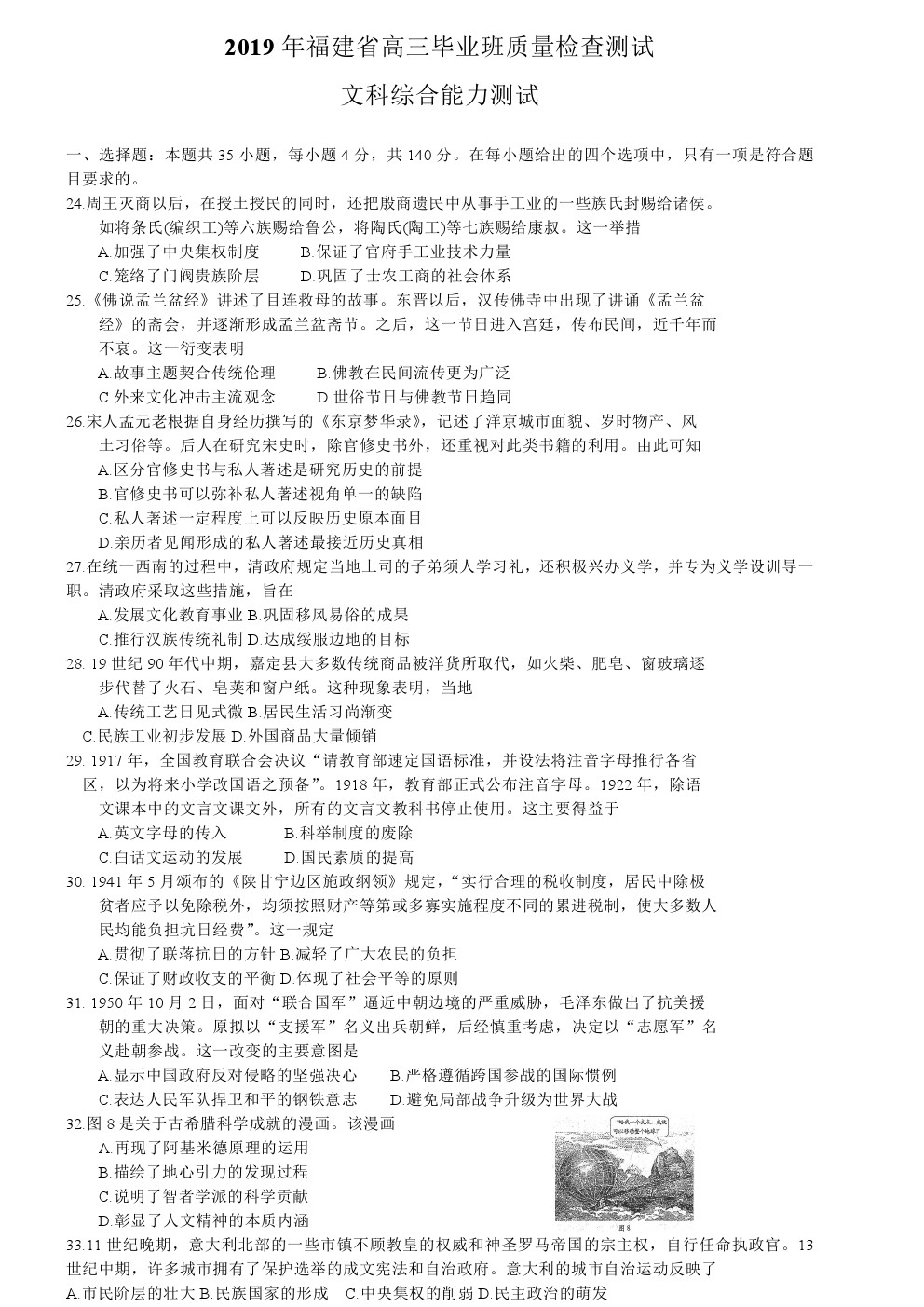 【摘要】福建省2019年高中畢業(yè)班3月質(zhì)量檢測文綜歷史試題及答案!更多高考信息可關(guān)注閩州教育高考資訊專欄。
