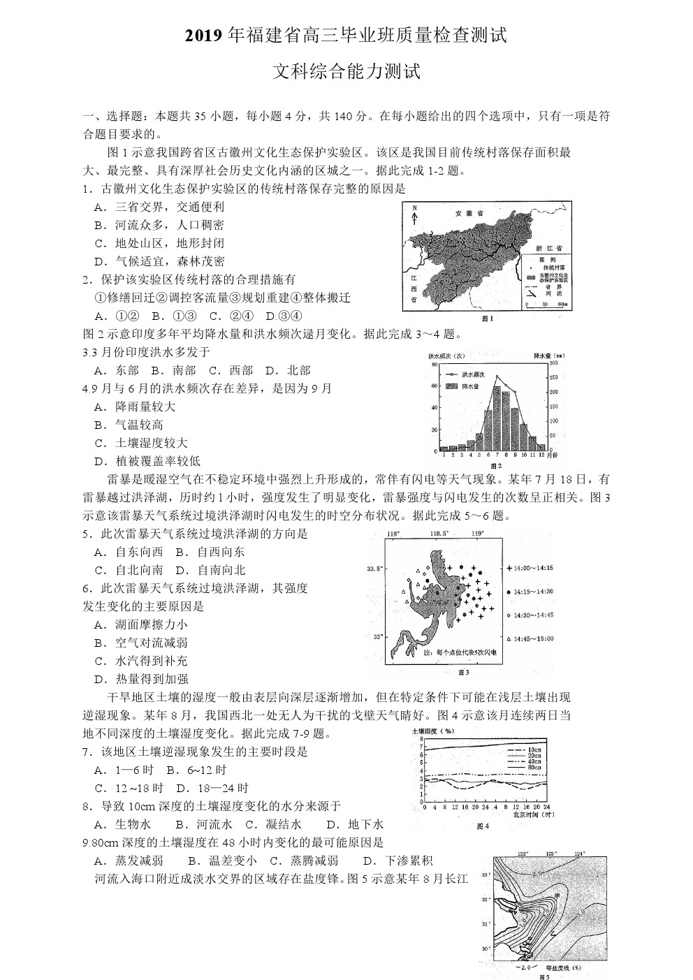 【摘要】福建省2019年高中畢業(yè)班3月質(zhì)量檢測文綜地理試題及答案。更多高考信息可關(guān)注閩州教育高考資訊專欄。