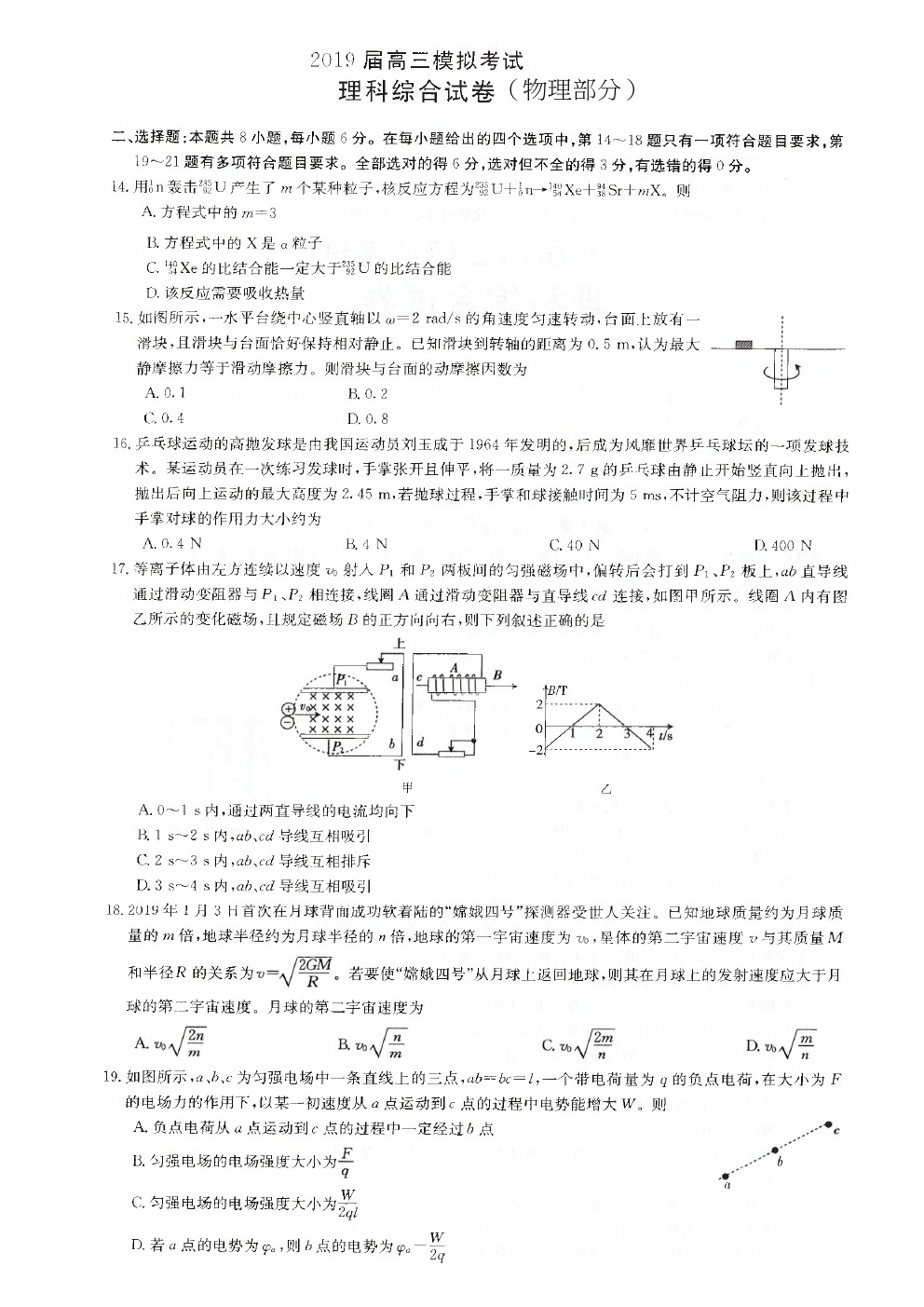 【摘要】2019屆福建省高三模擬理科綜合物理試題及答案!更多高考信息可關(guān)注閩州教育高考資訊專(zhuān)欄。