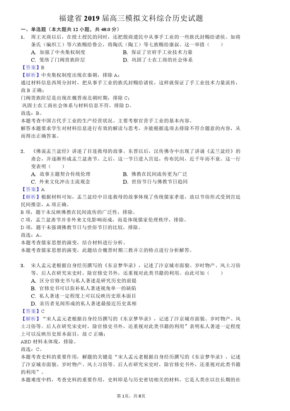 【摘要】2019屆福建省高三模擬理科綜合歷史試題及答案!更多高考信息可關(guān)注閩州教育高考資訊專欄。