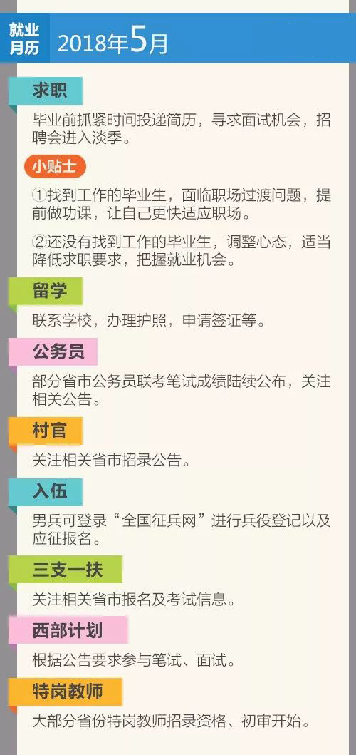 【摘要】即將迎來了新一屆的畢業(yè)生,新一屆畢業(yè)生將再創(chuàng)新高,那么大家將何去何從呢?以下就是小編今天給大家整理了相關(guān)的就業(yè)月歷,希望能夠幫助到大家,不要錯過了關(guān)鍵時間點。
