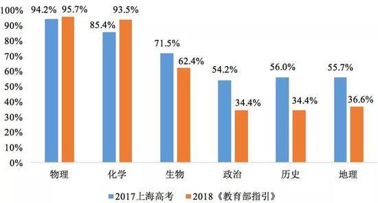 與2017年上海高考的數(shù)據(jù)對(duì)比,不難發(fā)現(xiàn)物理和化學(xué)的覆蓋率有所提升,而生物和政史地三科的覆蓋率均有所下降,這也反映了教育部規(guī)范選考科目要求的方向和目標(biāo)。