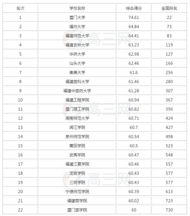【摘要】2019年福建省各大學排名已經公布了,下面小編整理了相關信息,供大家參考!更多高考信息可關注閩州教育高考資訊專欄。