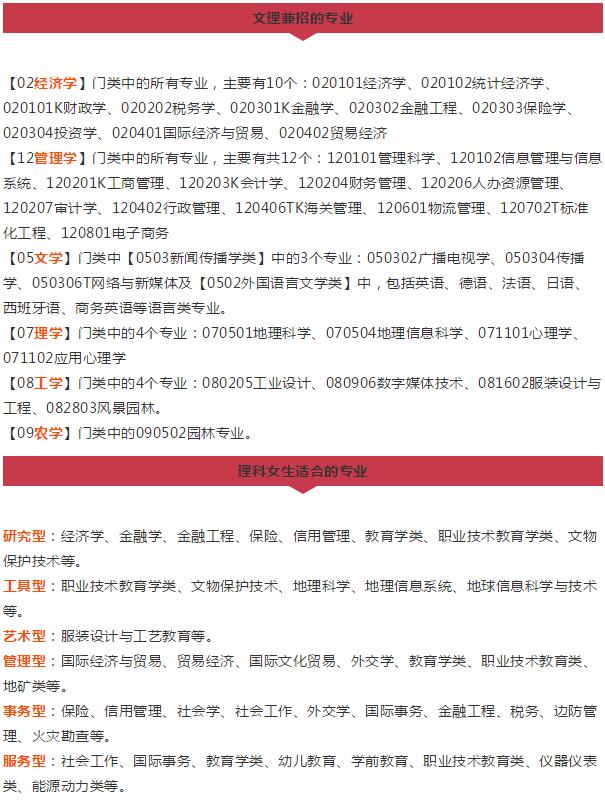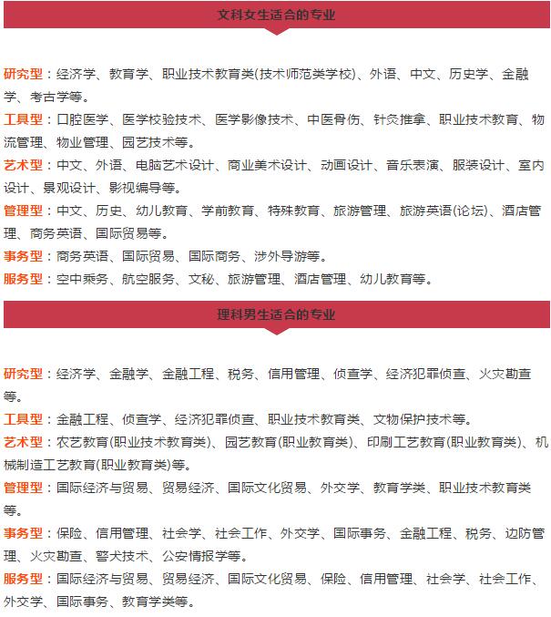 【摘要】文理科生分別可報哪些大學專業(yè)?文科男生適合什么專業(yè)?理科女生學什么專業(yè)比較好?以下盤點了文科、理科類專業(yè)的主要分布,及男女生分別適合學的文理科專業(yè),給2019高考生及家長參考!更多高考信息可關注閩州教育高考資訊專欄。
