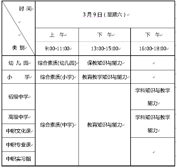 (二)考試時間:2019年3月9日,所有科目考試均采用紙筆方式進行,具體安排如下: