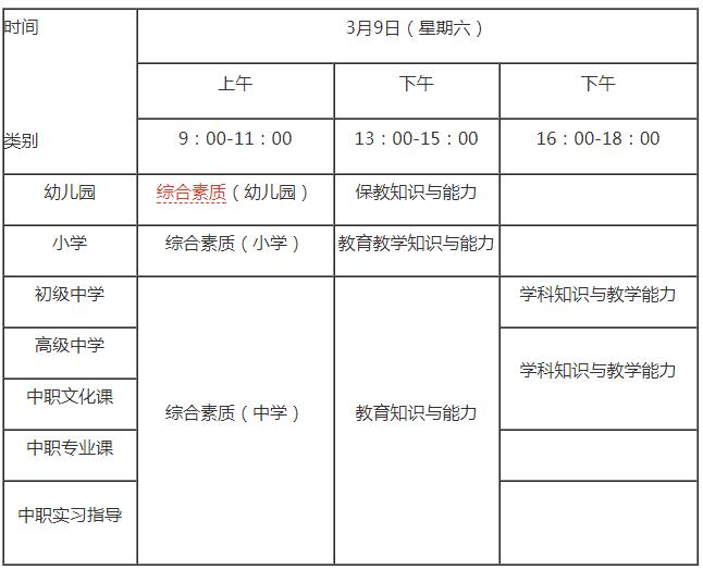 3.考試日期:2019年3月9日,具體時(shí)間安排如下。