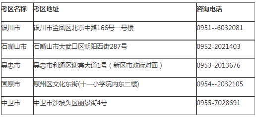 寧夏各考區(qū)名稱、地址、咨詢電話