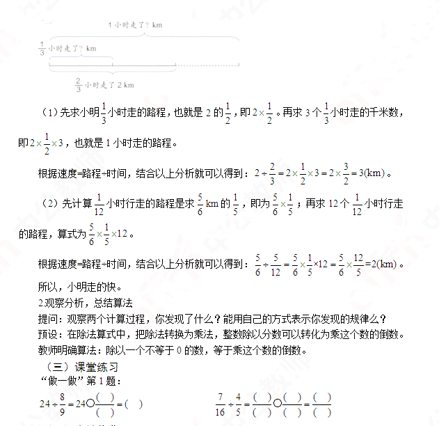(3)小組合作探究,歸納分?jǐn)?shù)除法運(yùn)算法則,能正確、迅速地進(jìn)行計(jì)算。