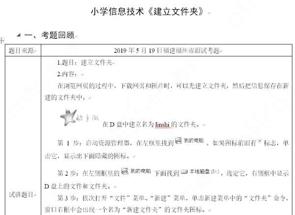 2019上教師資格面試真題及答案:小學信息技術(shù)《建立文件夾》
