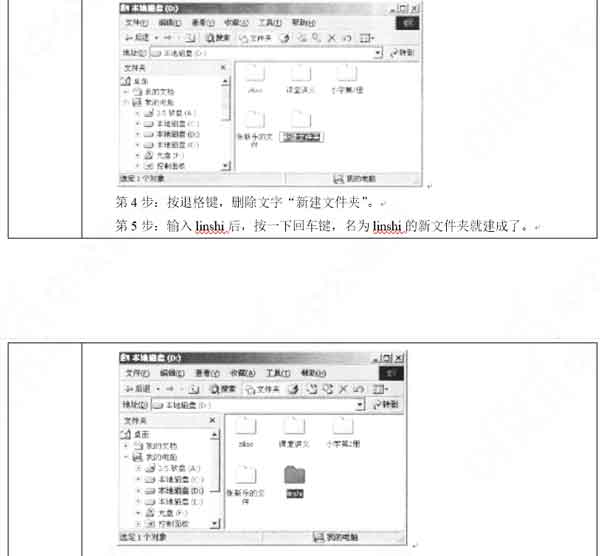 教師總結(jié):大家做得都非常好,但是新建文件夾除了教材上介紹的方法外,是否還有其他快捷的方法呢?大家課后可以探索。