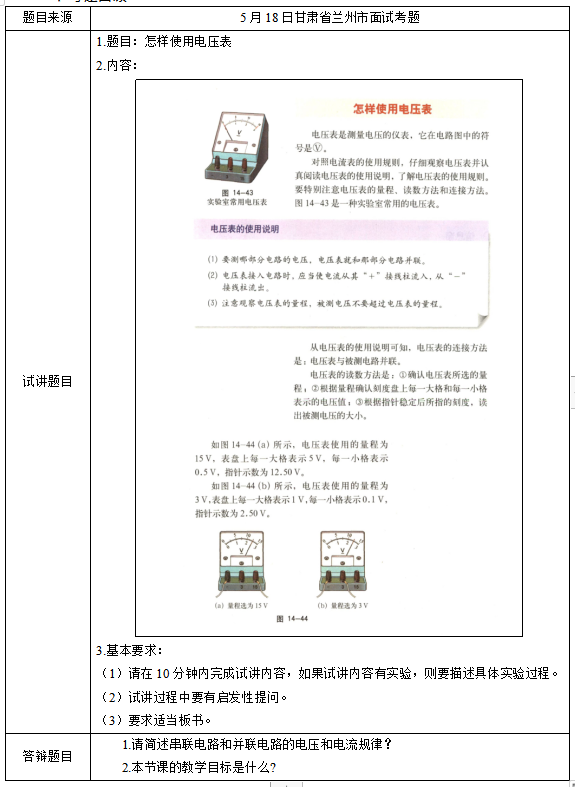 2019上教師資格面試真題解析:初中物理《怎樣使用電壓表》
