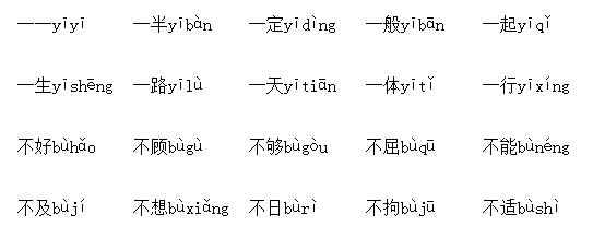 音變字詞訓練:讀準帶“一、不”的雙音節(jié)詞語: