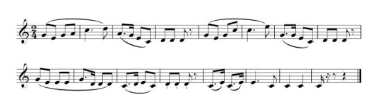 (2)該曲的曲式結(jié)構(gòu)為并列單二部曲式
