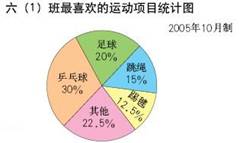 師:這就是已經(jīng)繪制好的六(1)班同學(xué)最喜歡的運(yùn)動(dòng)項(xiàng)目的扇形統(tǒng)計(jì)圖。
