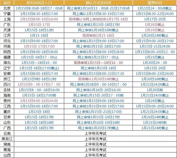 各省市報(bào)名繳費(fèi)金額、截止時(shí)間不一樣,具體截止時(shí)間如下: