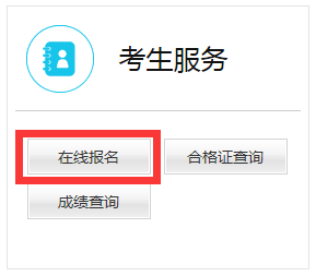 考生進(jìn)入官網(wǎng)后,在右下角“考生服務(wù)”區(qū)點(diǎn)擊“在線報(bào)名”,進(jìn)入報(bào)名系統(tǒng)。