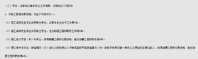 以上截圖內(nèi)容為河南中級職稱評審的具體要求,限定的是獲得的學(xué)歷專業(yè),并在從事本專業(yè)技術(shù)工程工程滿多少年限,才可以評審中級職稱。