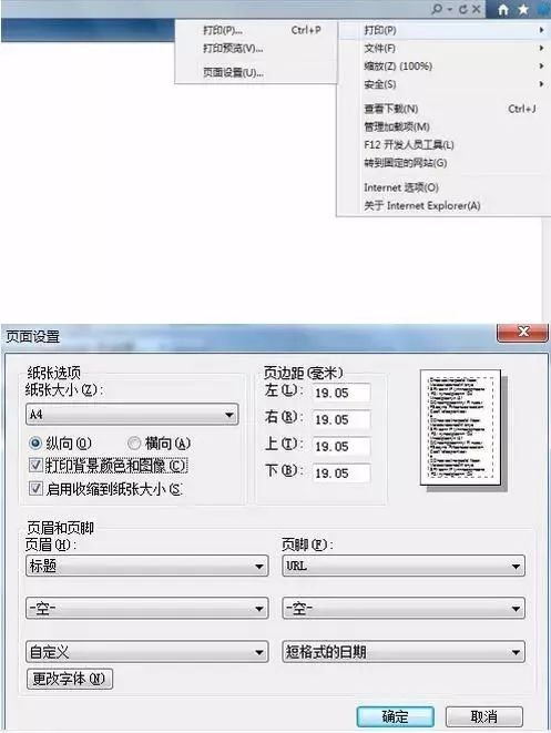 溫馨提示:有些考生如果Internet選項—高級中沒有打印這個選項,可以點擊IE瀏覽器右上角工具便能看到,點擊頁面設置里面有個打印背景顏色和圖片,勾上就可以了,如下圖所示