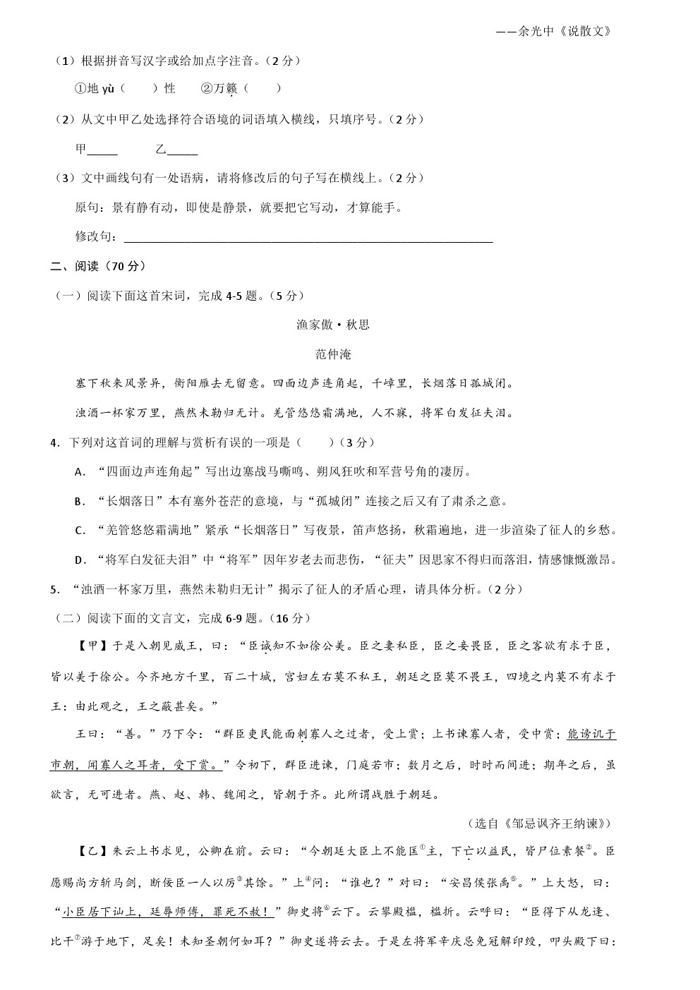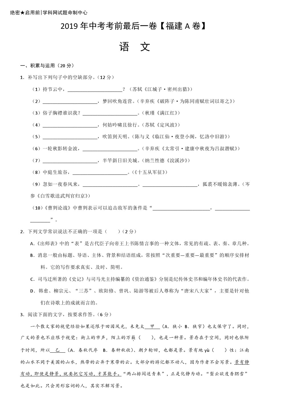 【摘要】【福建A卷】2019年初三中考考前最后一卷:語 文!更多中考信息可關(guān)注閩州教育中考資訊專欄。