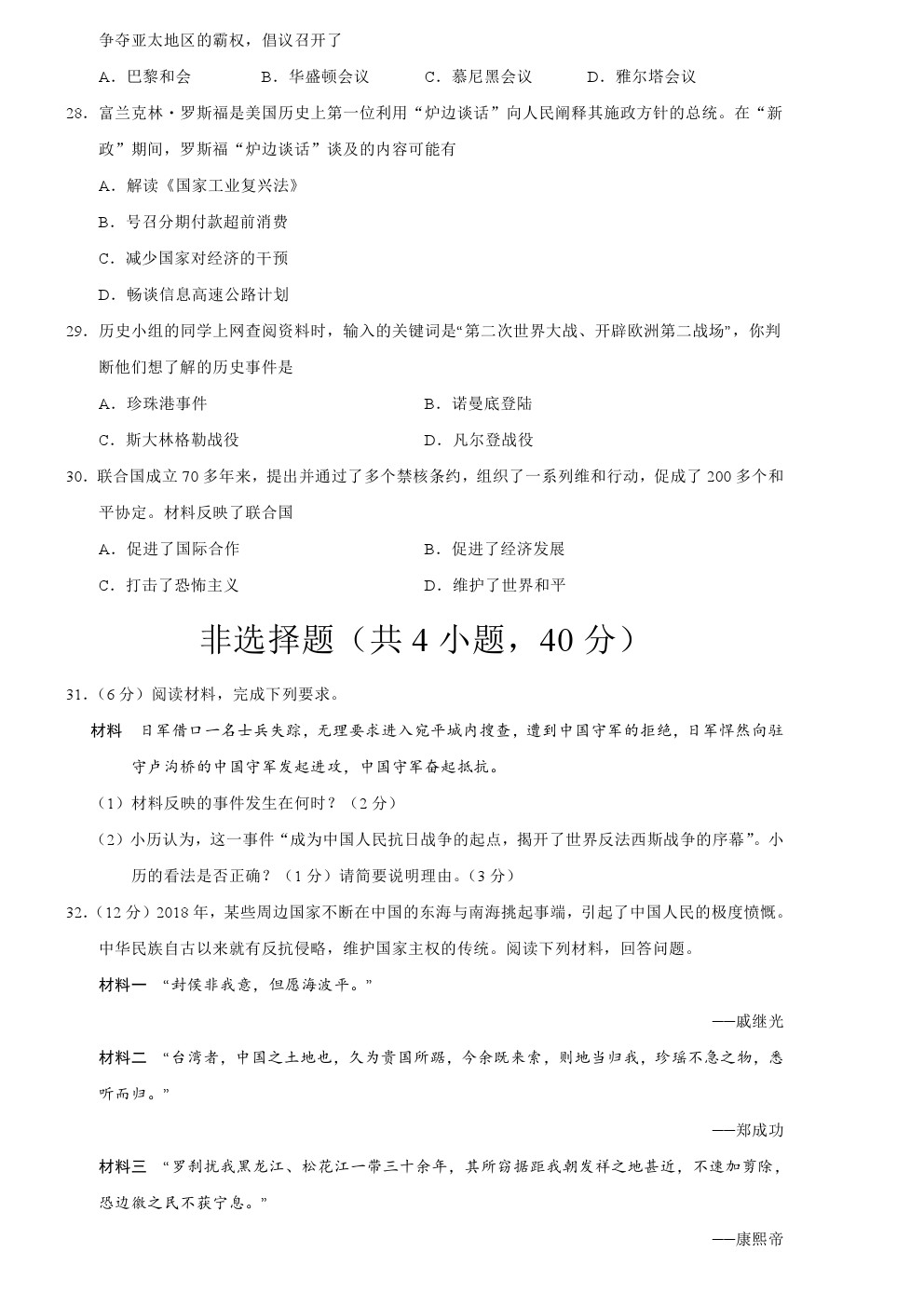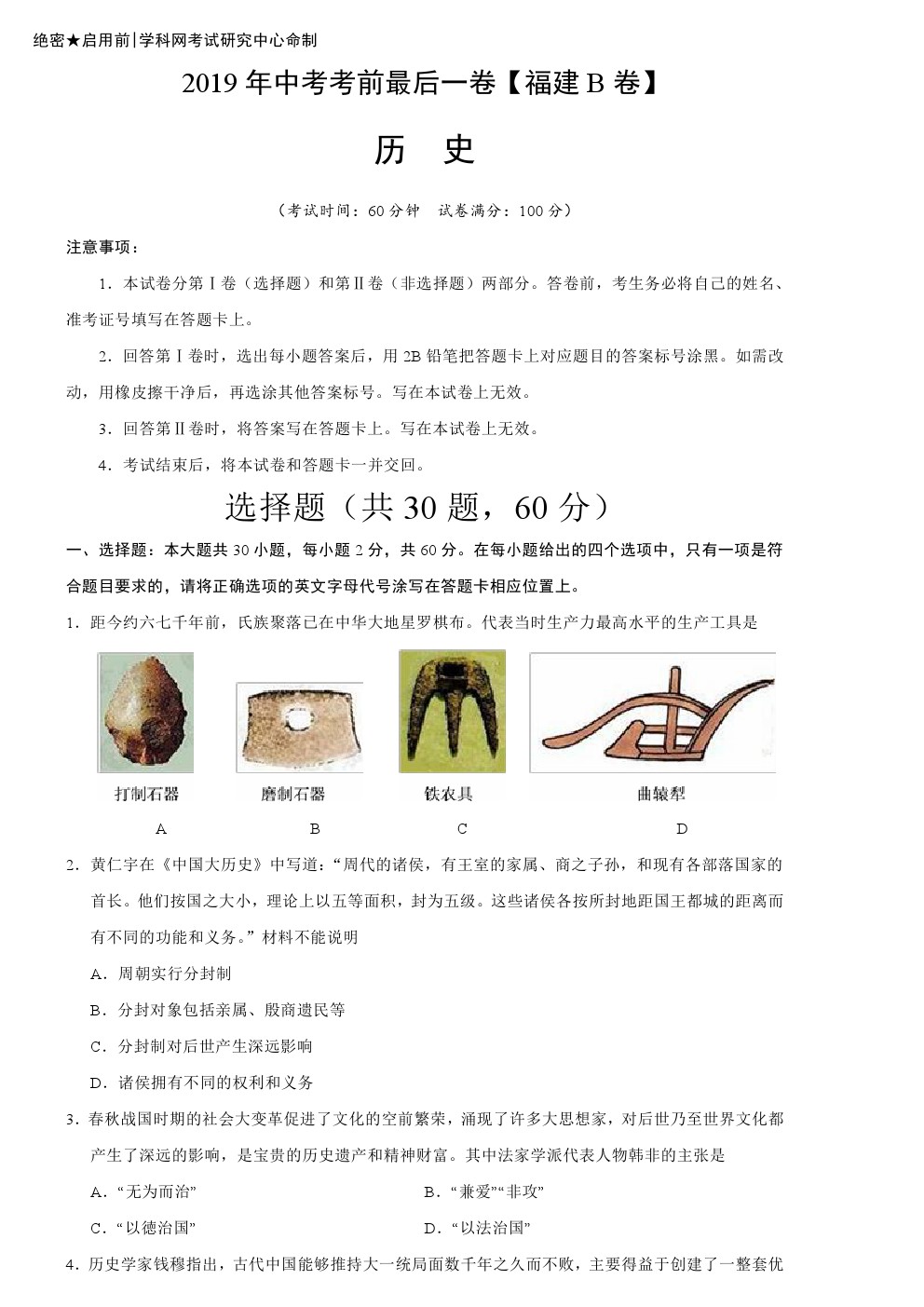 【摘要】【福建B卷】2019年初三中考考前最后一卷:歷史!更多中考信息可關(guān)注閩州教育中考資訊專欄。