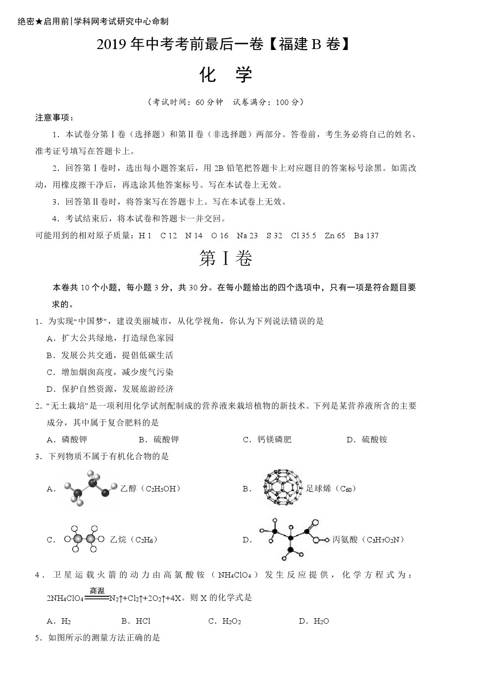 【摘要】【福建B卷】2019年初三中考考前最后一卷:化學(xué),更多中考信息可關(guān)注閩州教育中考資訊專欄。
