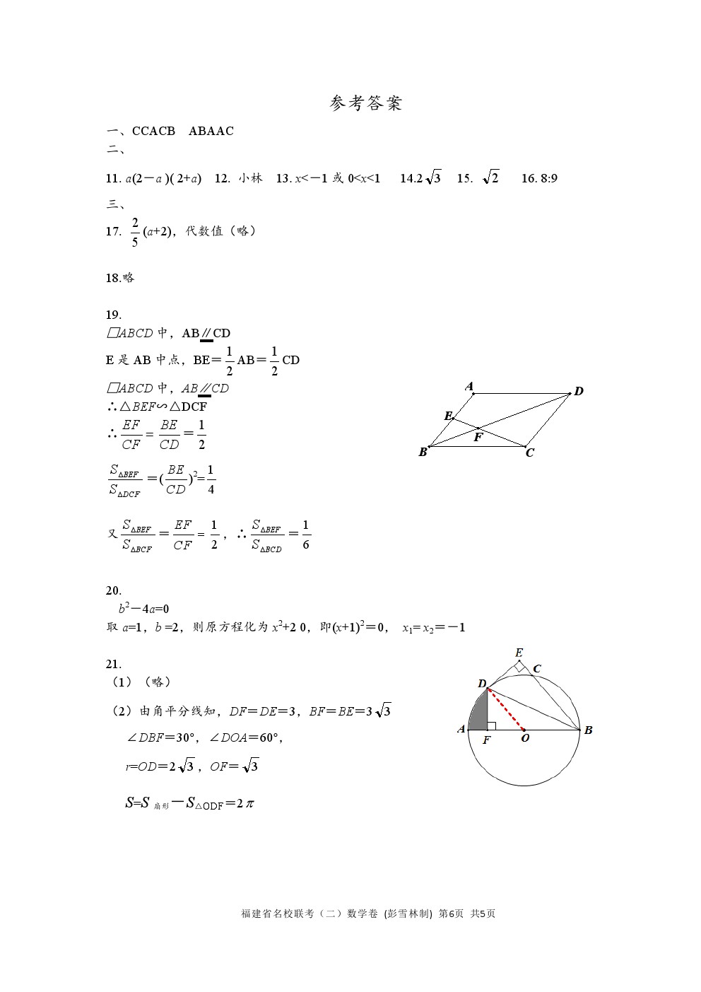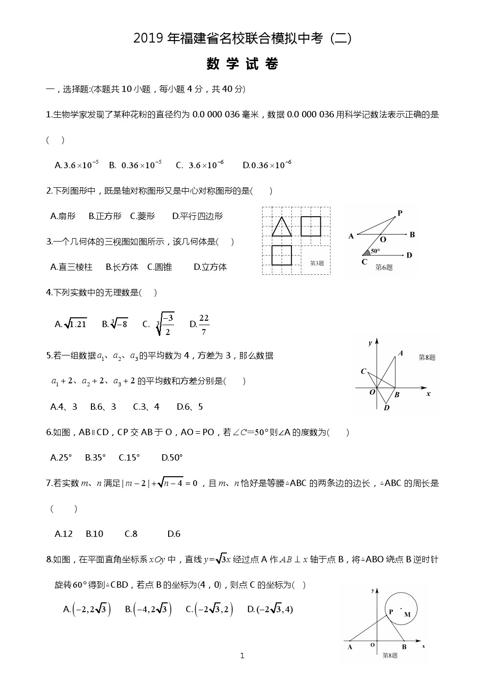 【摘要】2019年福建省名校聯(lián)合模擬中考數(shù)學(xué)試題及答案(二)!更多中考信息可關(guān)注閩州教育中考資訊專欄。