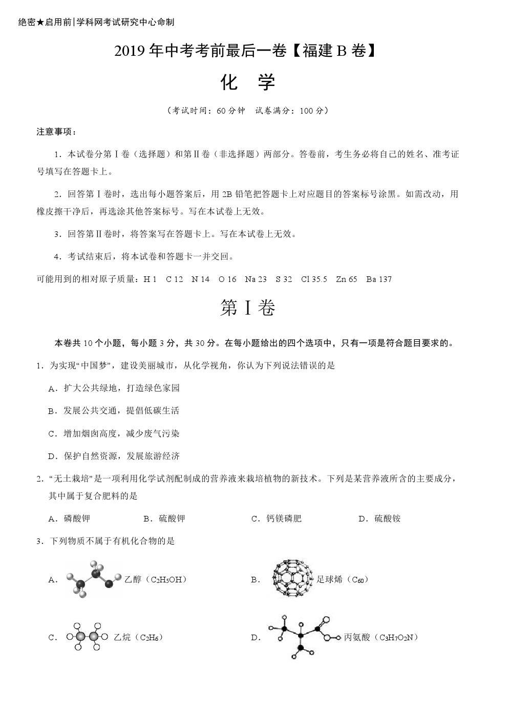 【摘要】2019年福建省學(xué)業(yè)水平考試化學(xué)最后一次仿真模擬試題(b卷)!更多中考信息可關(guān)注閩州教育中考資訊專欄。