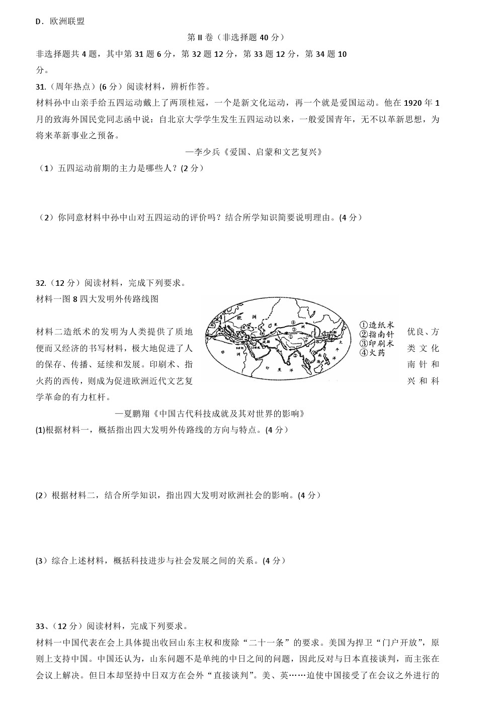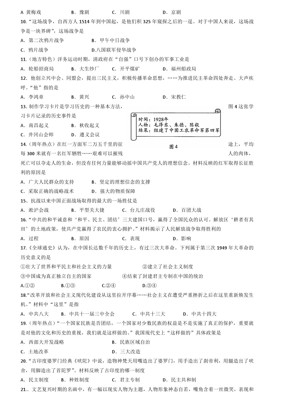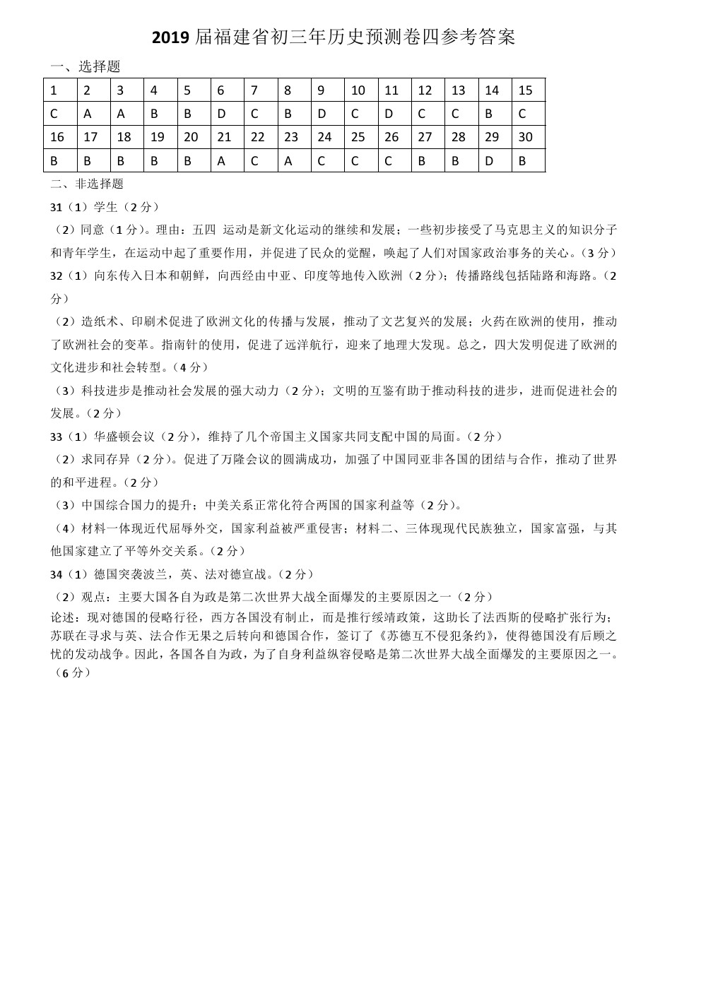【摘要】福建省2019屆中考?xì)v史預(yù)測(cè)試題及答案(卷四)!更多中考信息可關(guān)注閩州教育中考資訊專欄。