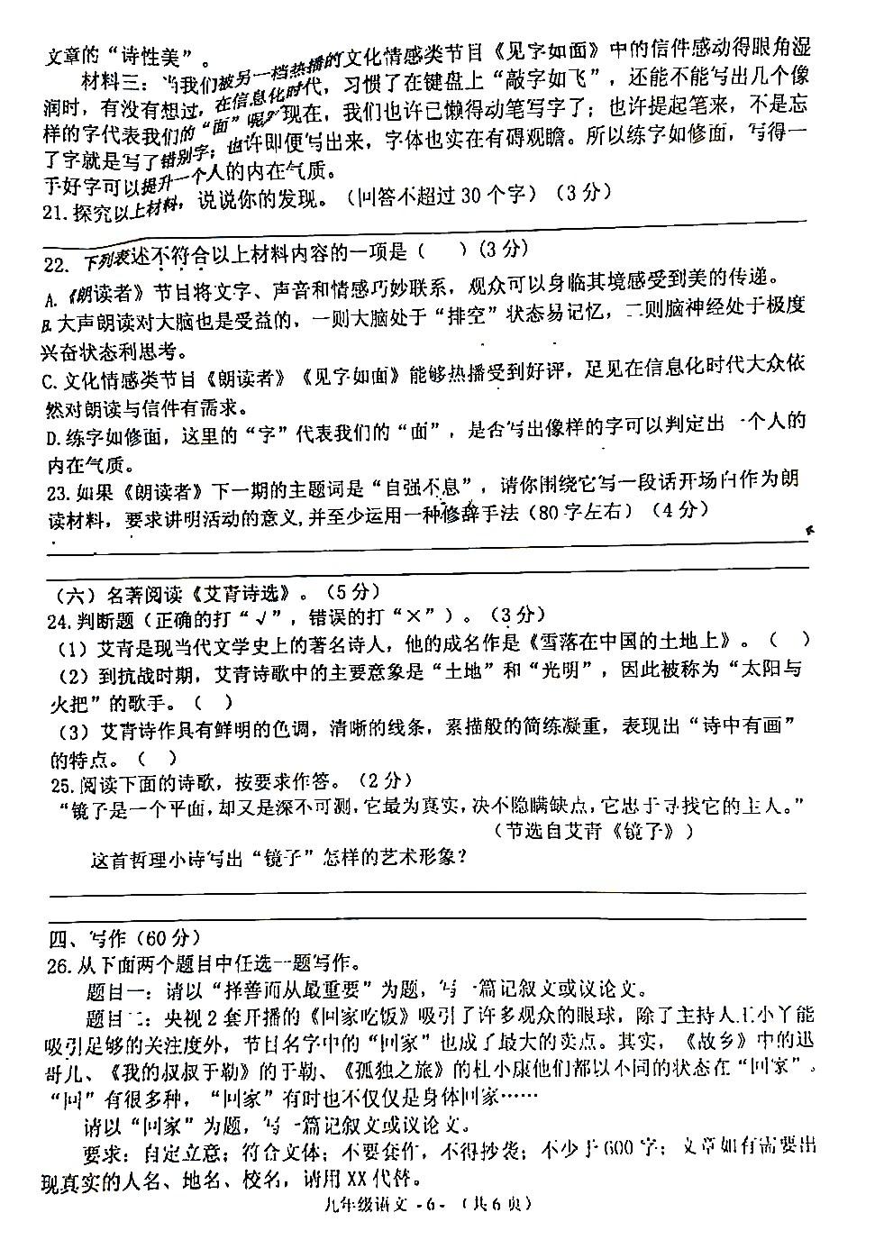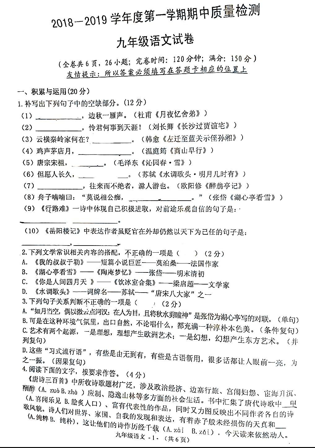 【摘要】福建省福州市長(zhǎng)樂華陽(yáng)中學(xué)2018-2019九年級(jí)上第一學(xué)期期中考試語(yǔ)文試卷!更多中考信息可關(guān)注閩州教育中考資訊專欄。