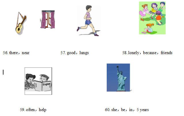 V. 看圖寫話 根據(jù)每小題所提供的圖畫情景和提示詞,寫出一個與圖畫情景相符的句子(每小題2分,滿分10分)