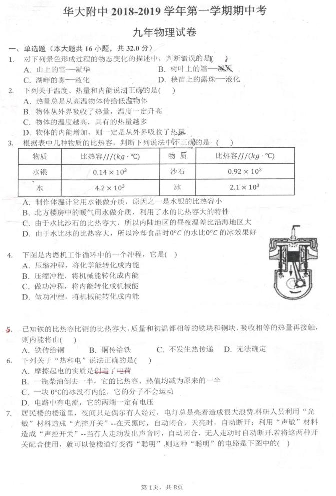 【摘要】福建省華僑大學(xué)附屬中學(xué)2018-2019學(xué)年第一學(xué)期九年級(jí)物理期中試題,考生們可以針對(duì)題目來更好的復(fù)習(xí)哦,更多高考信息可關(guān)注閩州教育高考資訊專欄。