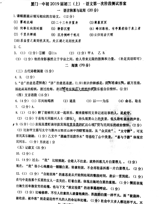 【摘要】福建廈門(mén)第一中2018九上第一次月考試題及答案!更多中考信息可關(guān)注閩州教育中考資訊專(zhuān)欄。