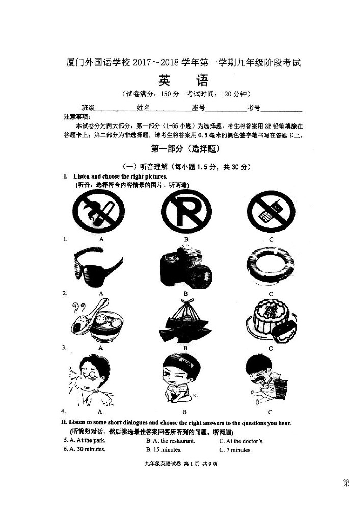 【摘要】福建省廈門(mén)實(shí)驗(yàn)中學(xué)2018屆九年級(jí)上學(xué)期期中考試英語(yǔ)試題及答案,更多中考信息可關(guān)注閩州教育中考資訊專欄。