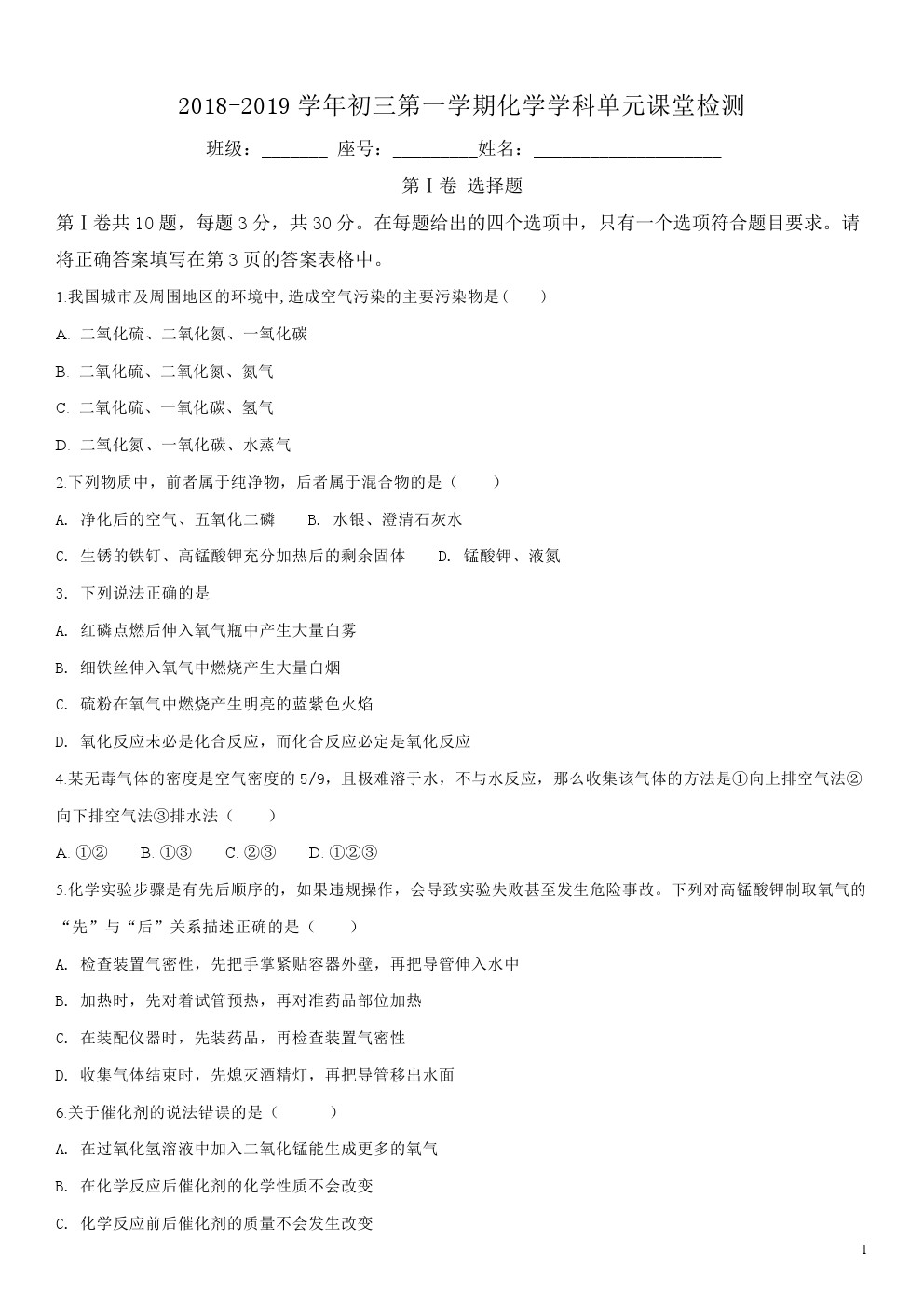【摘要】福建省廈門外國語學(xué)校2019屆九年級(jí)上學(xué)期第一次月考化學(xué)試題,更多中考信息可關(guān)注閩州教育中考資訊專欄。