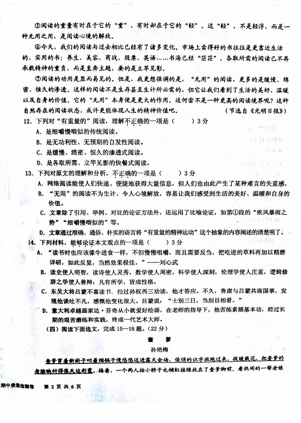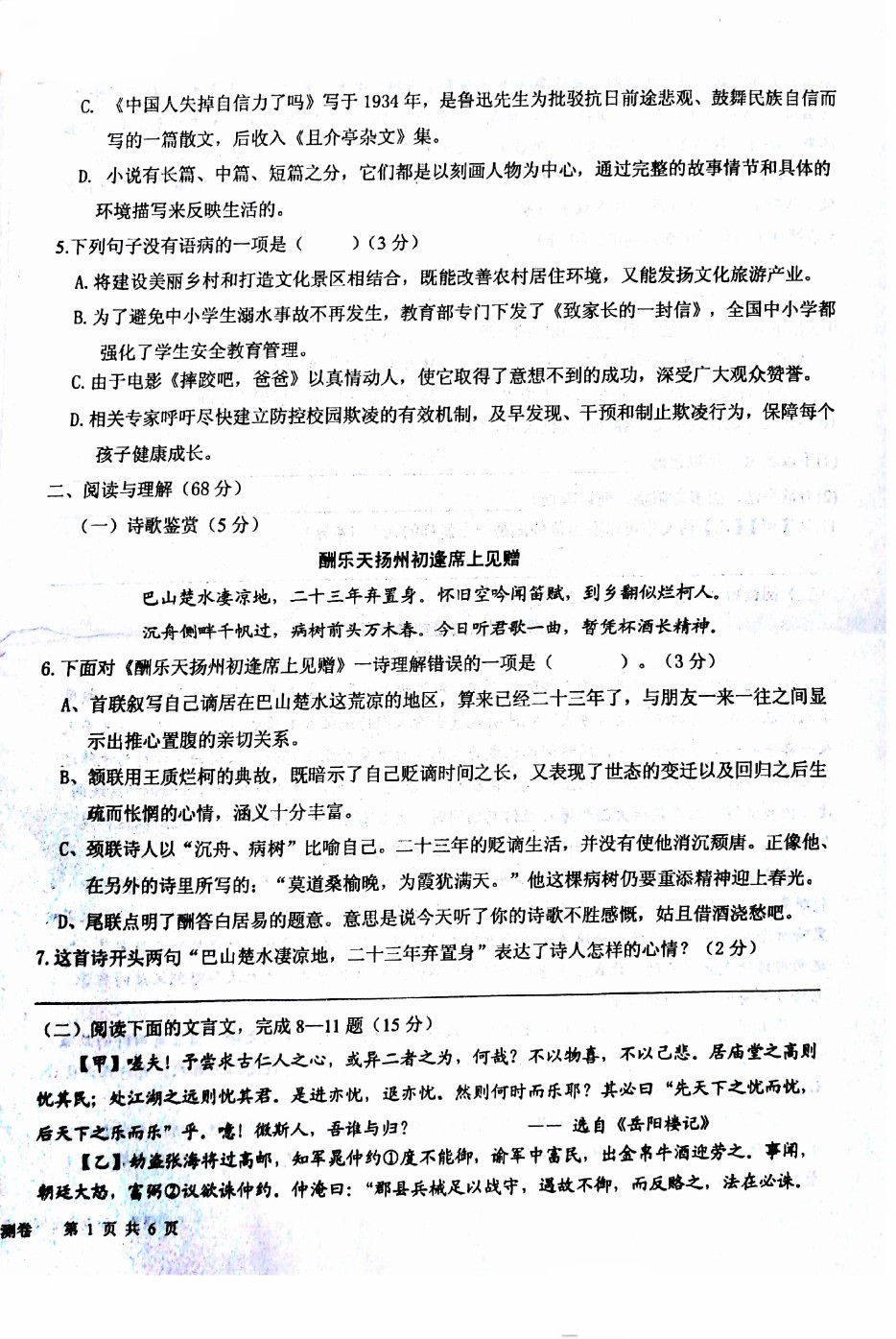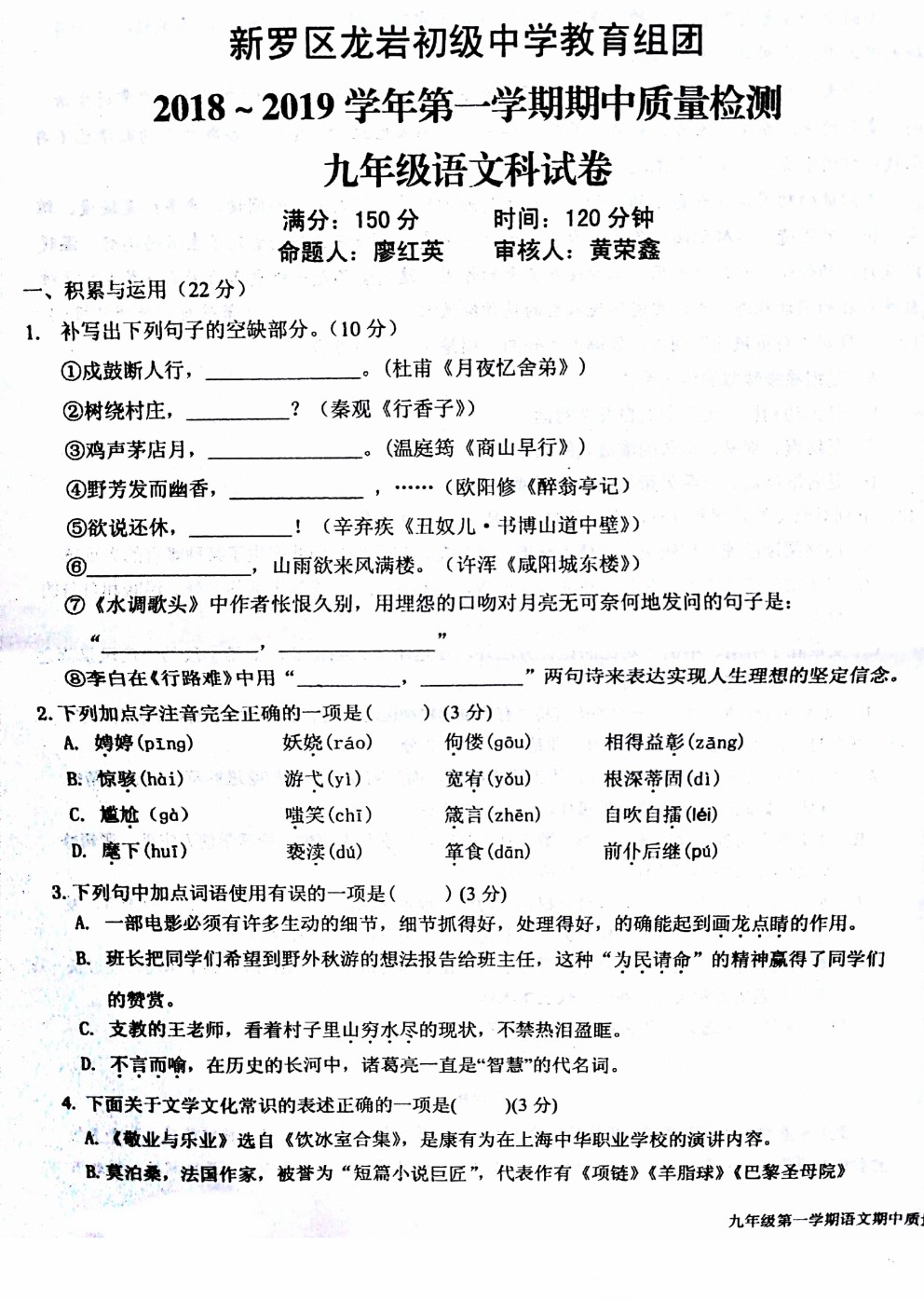 【摘要】福建省龍巖初級中學2018-2019第一學期期中質(zhì)量檢測九年級語文試卷!更多中考信息可關注閩州教育中考資訊專欄。