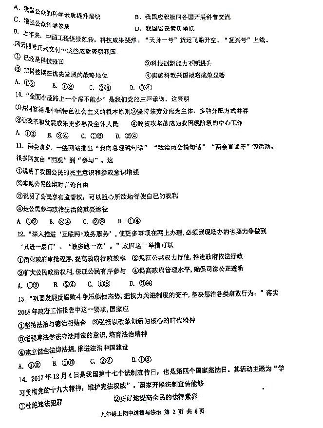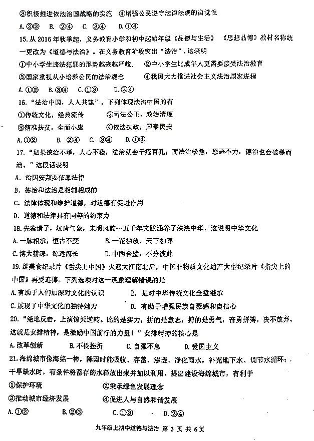 【摘要】福建省福州市楊橋中學2019屆九年級上學期期中考試道德與法治試題,供大家了解,更多中考信息可關(guān)注閩州教育中考資訊專欄。