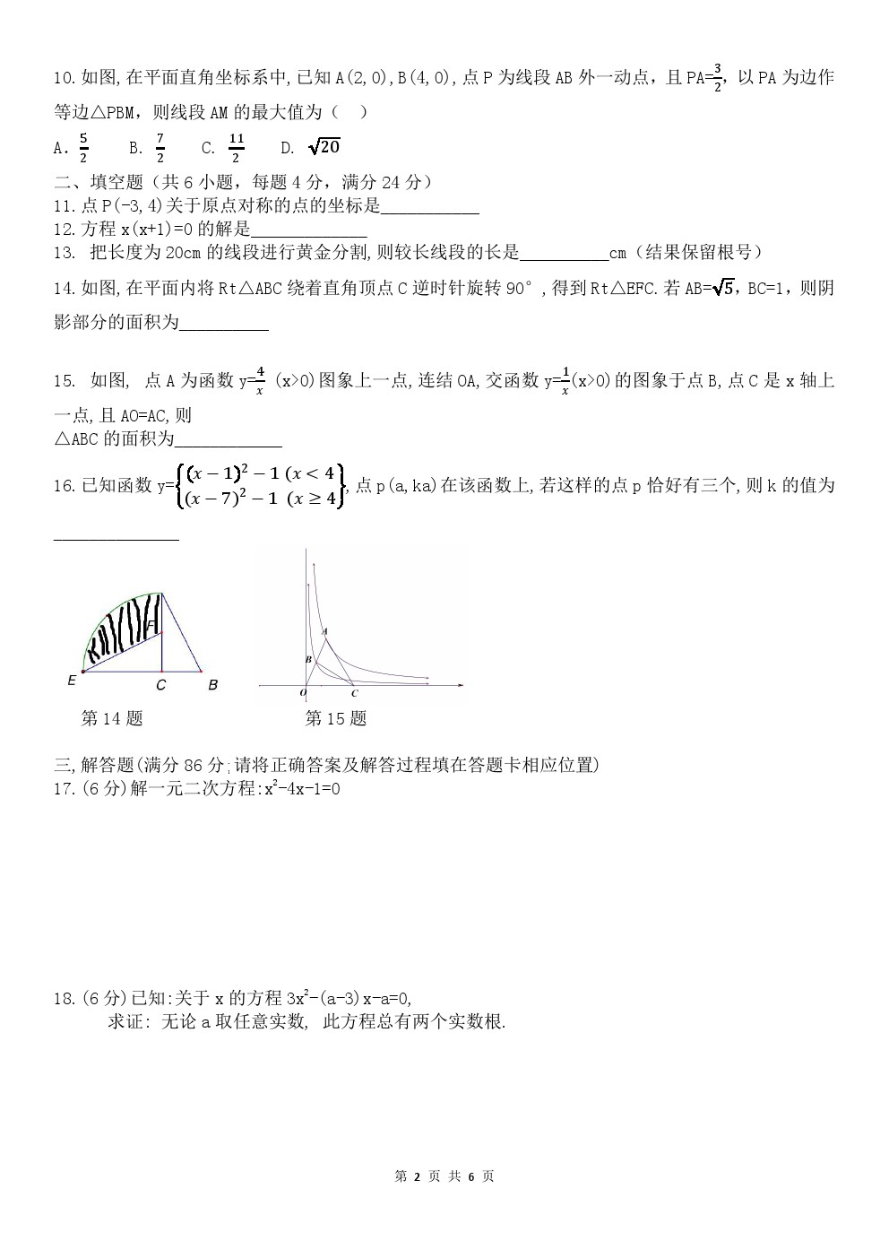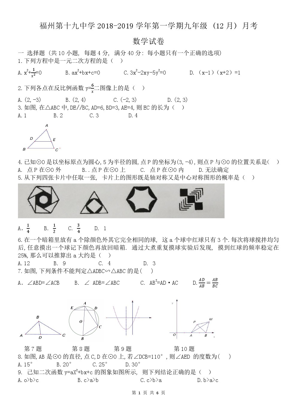 【摘要】福州第十九中學2018-2019九年級第一學期12月數學月考試題,供參閱,更多中考信息可關注閩州教育中考資訊專欄。
