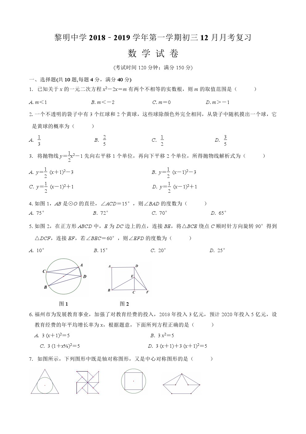 【摘要】福州黎明中學第一學期初三數(shù)學12月月考復習試題,僅供參考,更多中考信息可關注閩州教育中考資訊專欄。