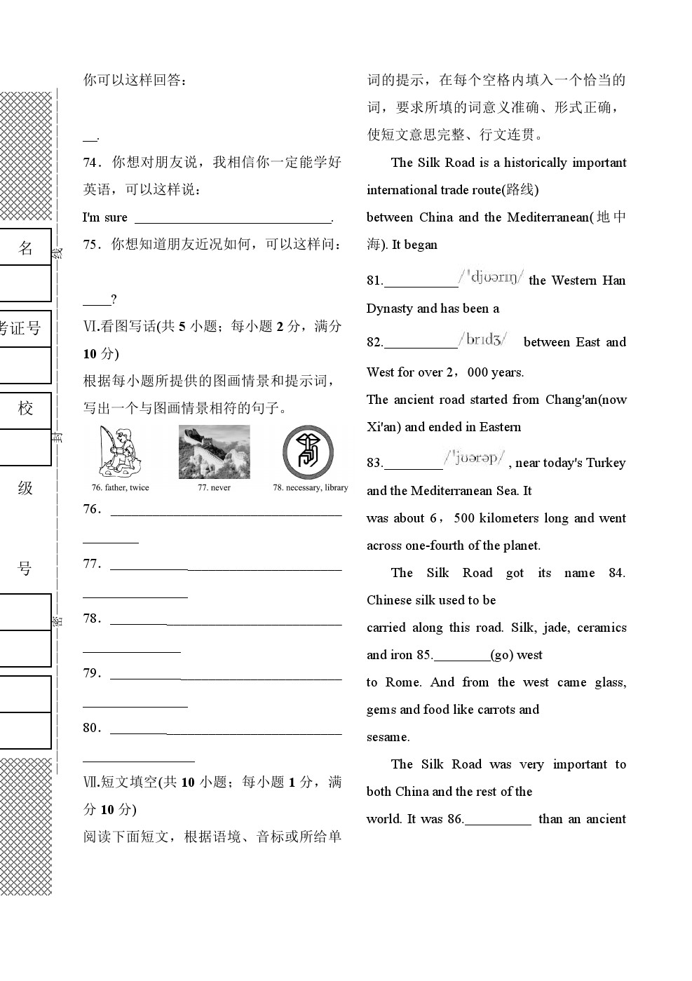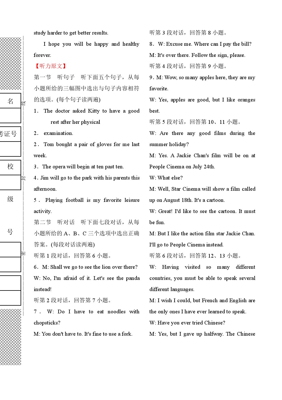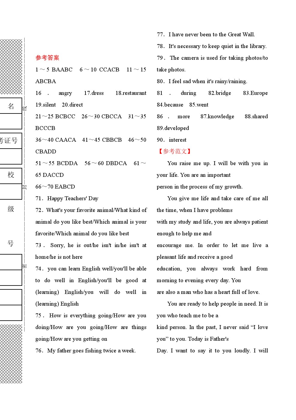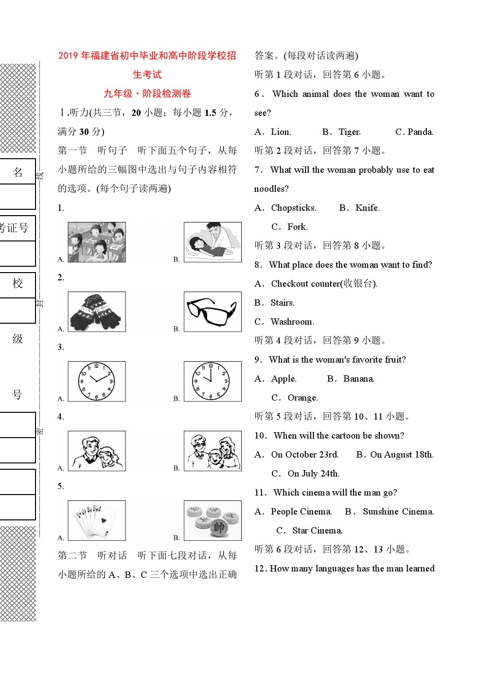 【摘要】2019年福建省初中畢業(yè)和高中階段學(xué)校招生考試 九年級(jí)英語(yǔ)階段檢測(cè)試題及答案,供大家參閱,更多中考信息可關(guān)注閩州教育中考資訊專欄。